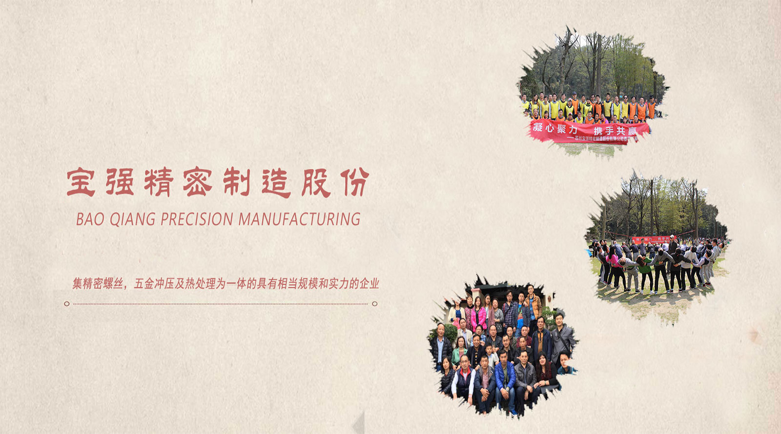蘇州寶強精密制造股份有限公司(股票代碼:837535始創于2003年,是一家民營企業、現有資產1.6億元,公司占地面積19125.4㎡, 建筑面積31804.6㎡。經過十多年的發展,現已成為集精密螺絲、五金沖壓、精密注塑、模具制造、熱處理及表面處理為一體的實力企業。擁有先進的生產設備和精良的檢測儀器,產品廣泛應用于通訊、電子、家電、工程機械、汽車、輪船等行業,寶強依賴卓越的品質和完善的服務贏得了客戶的信任和市場的肯定。